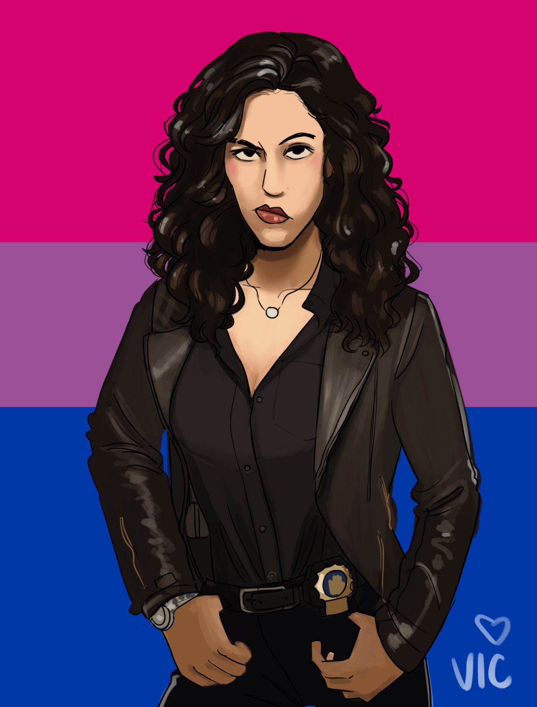 Sketch of Rosa Diaz from Brooklyn-99. I LOVE that they made her bi!! REPRESENTATION NEVER HAS FELT SO GOOD! Rosa was one of my favourite characters, and now I love her even more. Also I love that Stephanie Beatriz is bi in real life. Thank you B-99 for continuing to be one of the best shows on Netflix ❤